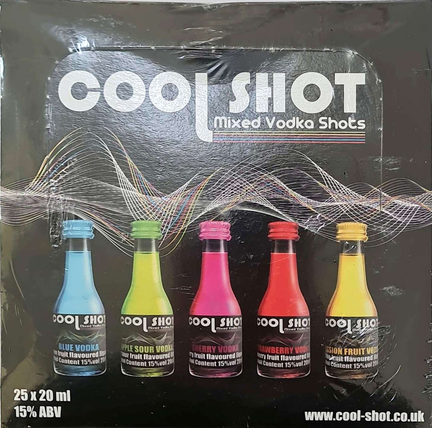 Cool Shot Mixed Vodka shots: 5 of each Blue, Apple Sour, Cherry, Strawberry & Passion Fruit