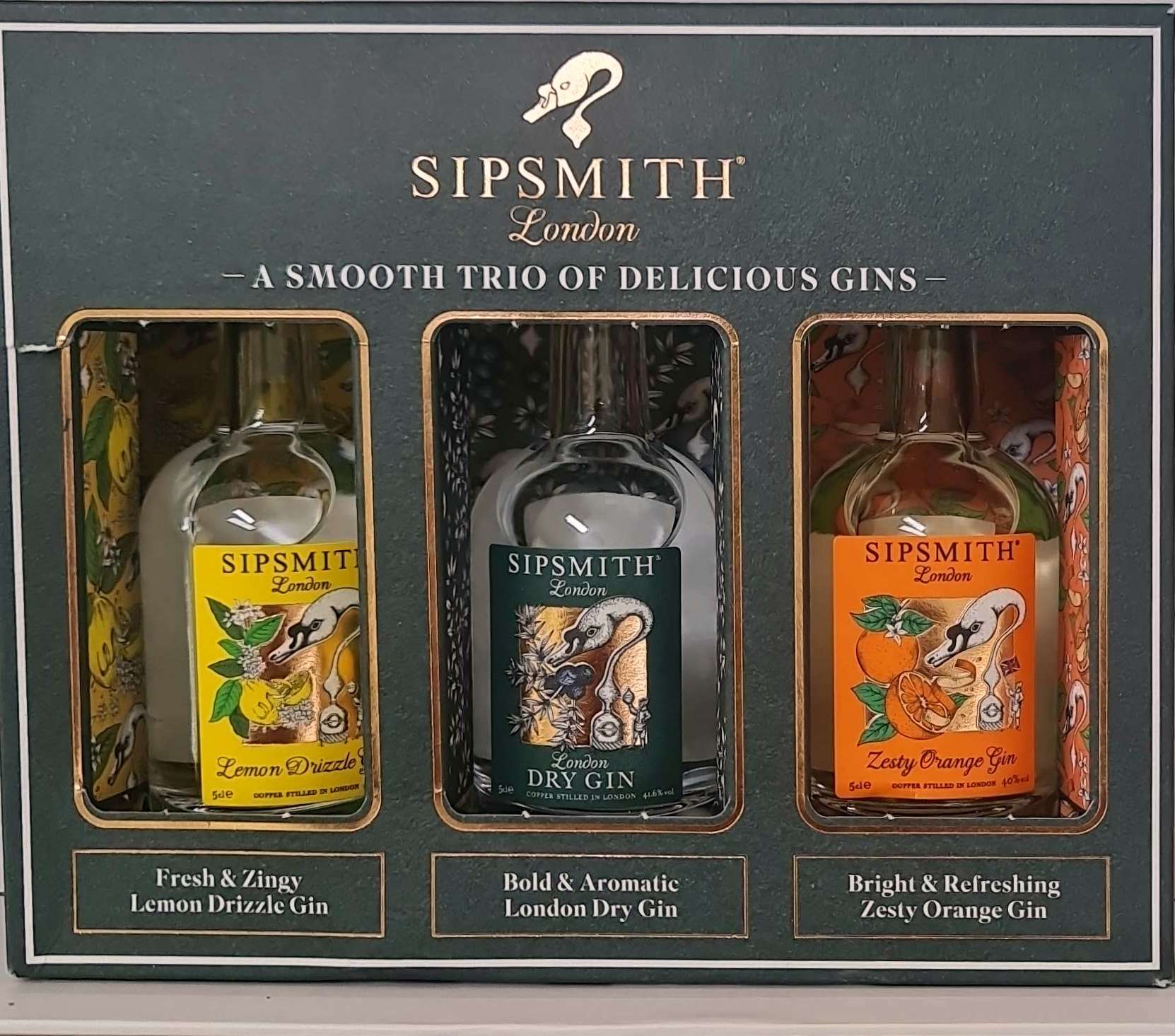 SIPSMITH London trio of delicious Gins: Lemon Drizzle Fresh & Zingy Gin, Bold & Aromatic London Dry Gin, & Bright & Refreshing Zesty Orange Gin