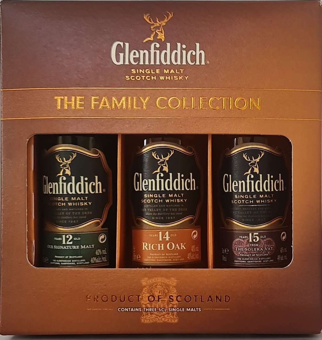 Glenfiddich The Family Collection: 12 year old Signature Malt, 14 year old Rich Oak & 15 year old The Solera Vat