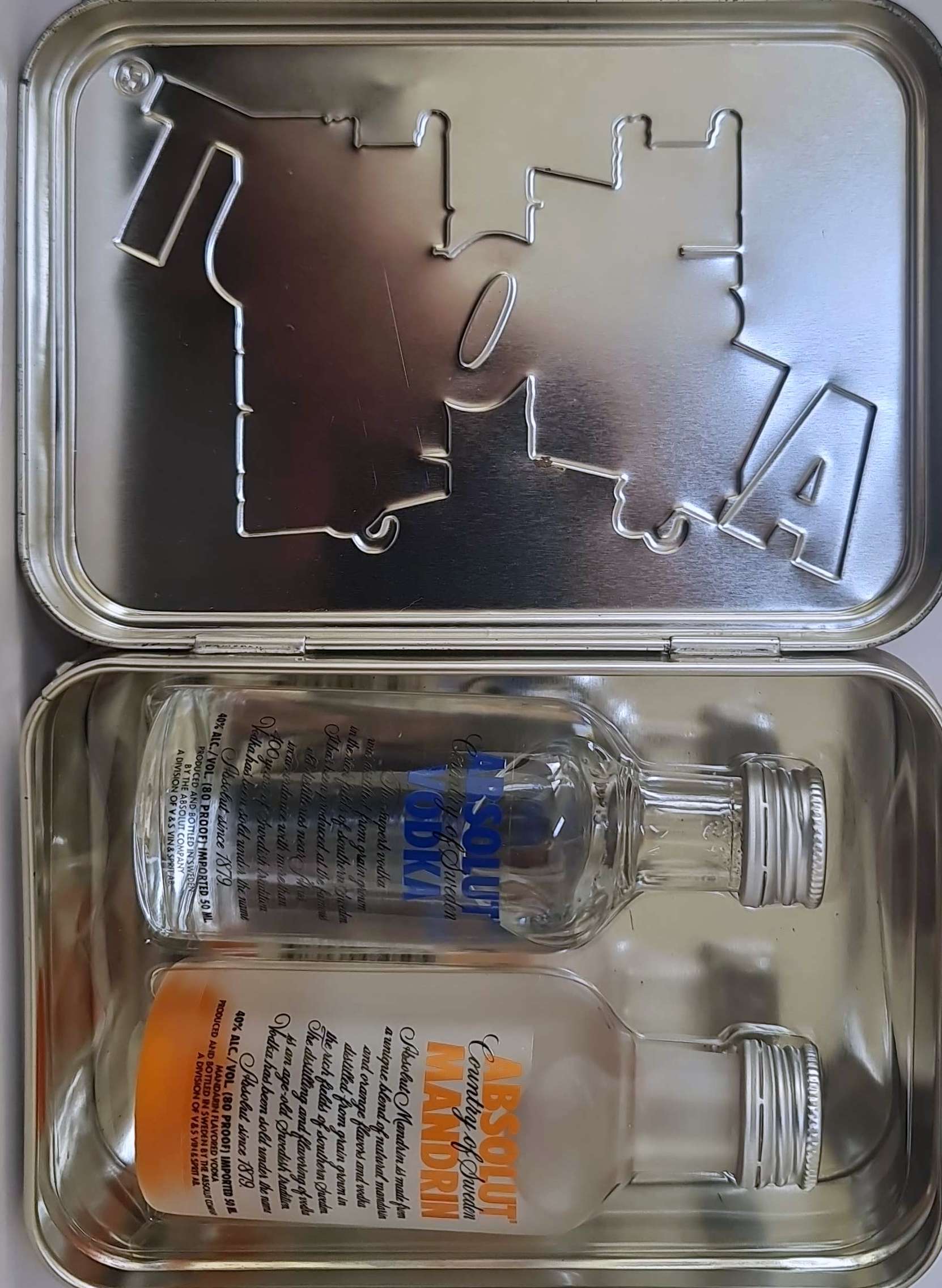 Absolute Vodka & Absolute Mandrin in a silver tin case